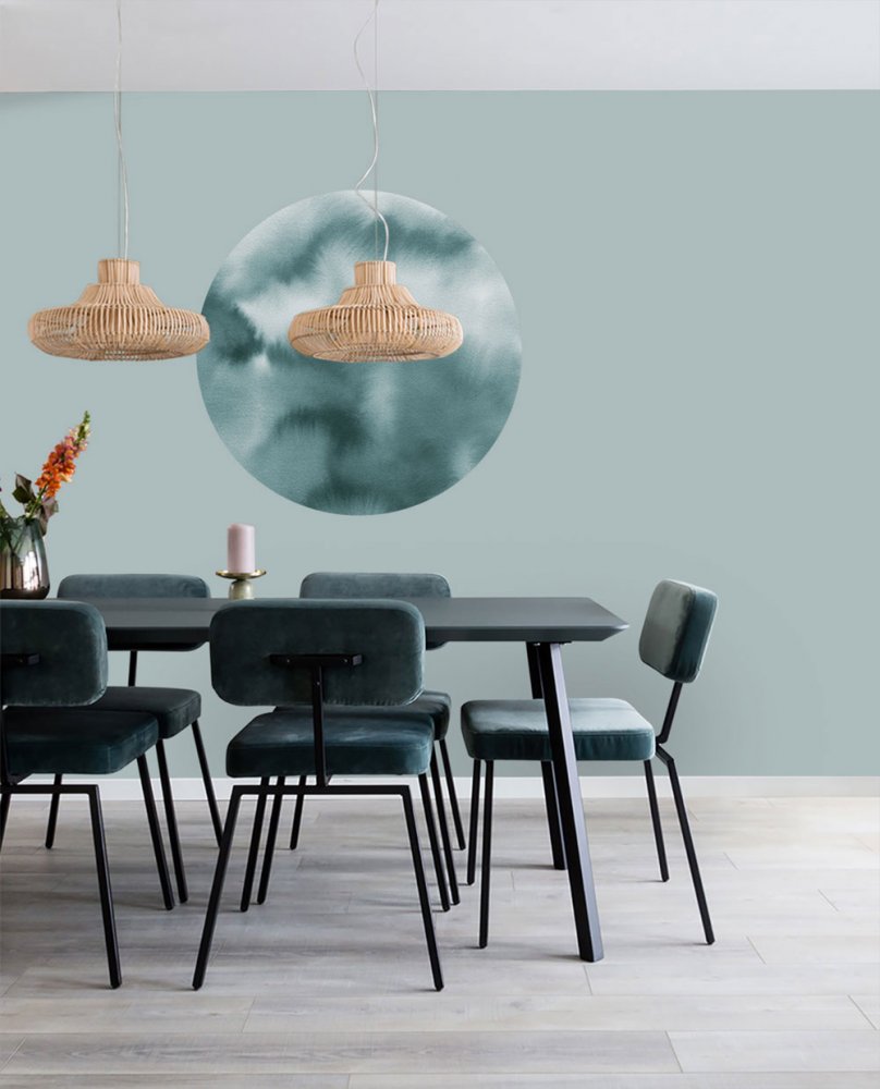 Jak se rozhodnete kruh nalepit je samozřejmě na vás, ale byl navržen z horní a dolní částí. Což znamená, že spoj je vertikálně, přesně uprostřed. Při lepení kruhu může pomoci si nejprve nakreslit na zeď svislou čáru pomocí olovnice. Pomocí této čáry úhledně vyrovnejte první část. Nalepení druhé části je zcela jasné.