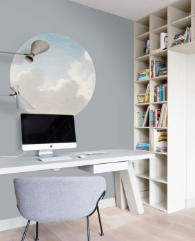 Jak se rozhodnete kruh nalepit je samozřejmě na vás, ale byl navržen z horní a dolní částí. Což znamená, že spoj je vertikálně, přesně uprostřed. Při lepení kruhu může pomoci si nejprve nakreslit na zeď svislou čáru pomocí olovnice. Pomocí této čáry úhledně vyrovnejte první část. Nalepení druhé části je zcela jasné.