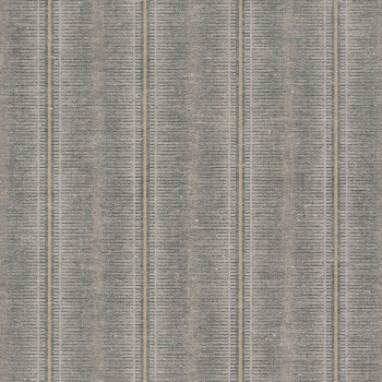 Vliesová tapeta imitace látky s pruhy v šedých, černých a béžových odstínech.