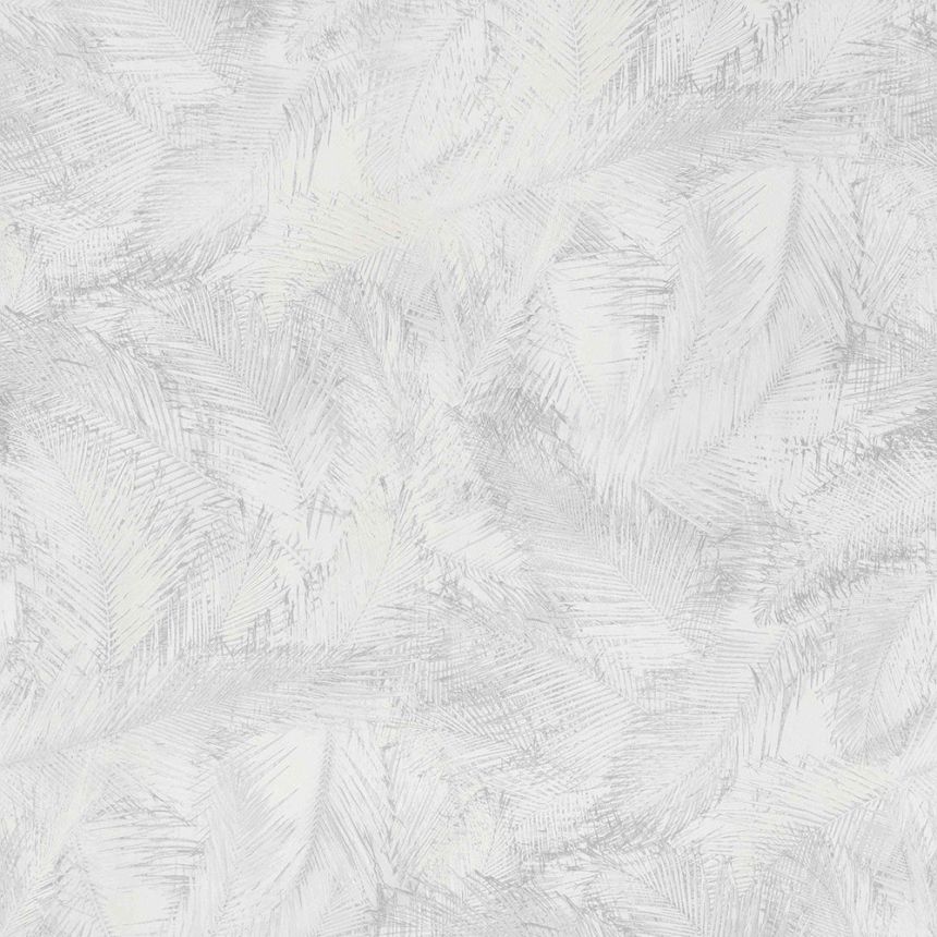 Vliesová, šedo-bílá tapeta s palmovými listy.