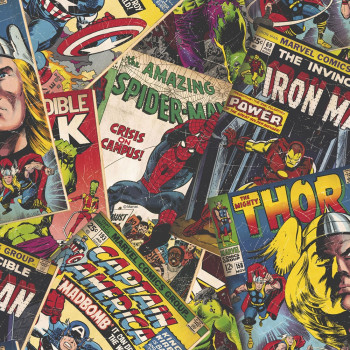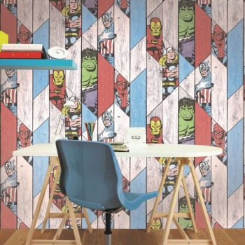 Papírová komiksová tapeta 102435, Marvel Wood Panel, Kids@Home 6, Graham & Brown