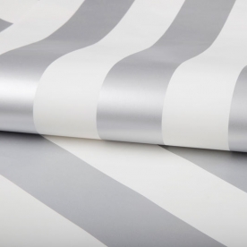 Vliesová tapeta se stříbrnými metalickými a bílými pruhy.
