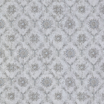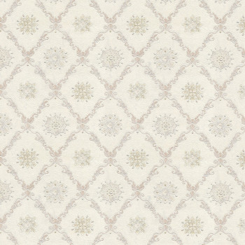 Luxusní vliesové tapety s vinylovým povrchem. Bohatý zámecký ornamentální vzor, plastická textura, odstíny na tapetě - decentní perlová, vzor metalická béžová s nádechem do růžová a šedo-stříbrná.
