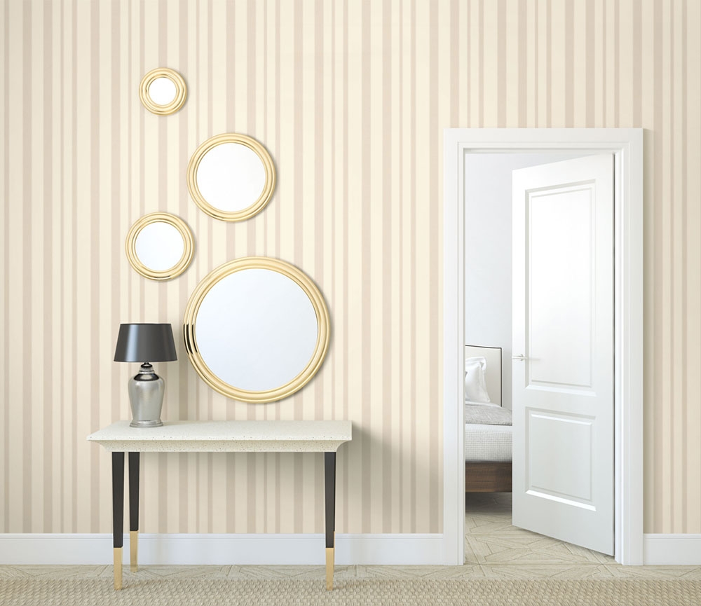 Luxusní vinylová tapeta s pruhy v odstínech béžové.