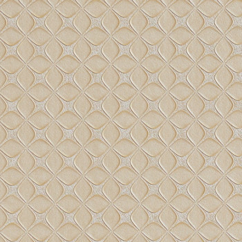 Vliesová, hnědo-béžová metalická tapeta s geometrickým vzorem.