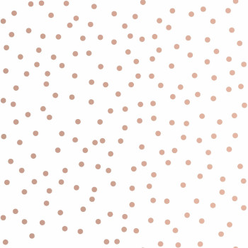 Vliesová, bílá tapeta s puntíky v barvě růžového zlata.