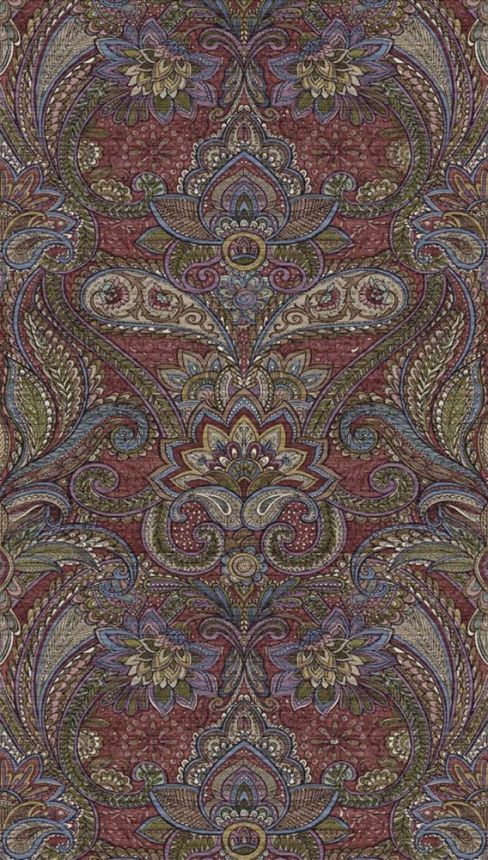 Ornamentální obrazová tapeta v odstínech červené, fialové, modré, zelené.