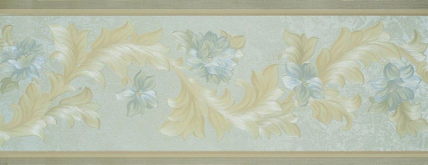 Luxusní, jemně plastická, květinová vinylová bordura. Metalické odstíny modré, šedé a béžové.