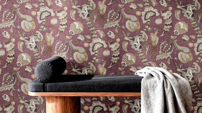 Barevná paleta kolekce je tlumená a přirozená. Najdete zde odstíny bledě modré, šedomodré, béžové, jemné zelené nebo vínové, které vytvářejí harmonický a uklidňující efekt na stěně.