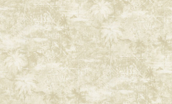 Vliesová tapeta s vinylovým povrchem, motivy palem, béžové odstíny, látková textura.