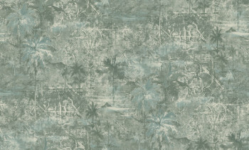 Vliesová tapeta s vinylovým povrchem, motivy palem, zelené odstíny, látková textura.