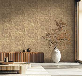 Vliesová tapeta s vinylovým povrchem, listy, tmavě hnědá.