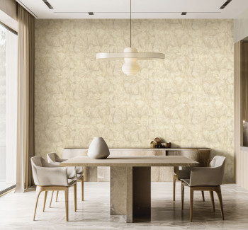 Vliesová tapeta s vinylovým povrchem, listy, béžová, krémová.
