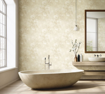 Vliesová tapeta s vinylovým povrchem, květinový vzor s efektem malby, odstíny béžové a krémové.
