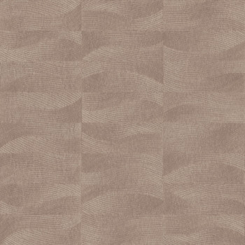 Vliesová tapeta s vinylovým povrchem, textura tkaniny, imitace výšivky, vlnky, vzor evokuje pruhy, hnědo červená.