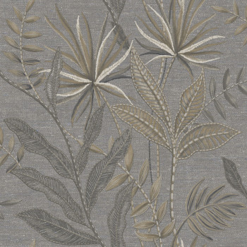 Vliesová tapeta s vinylovým povrchem, látková textura, listy, podklad v kombinaci černé, hnědé a šedé, listy v odstínech hnědé, béžové a černé.