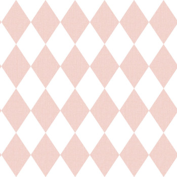 Vliesová tapeta na zeď, s jemnou textilní strukturou, růžové a bílé kosočtverce.