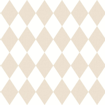 Vliesová tapeta na zeď, s jemnou textilní strukturou, béžové a bílé kosočtverce.