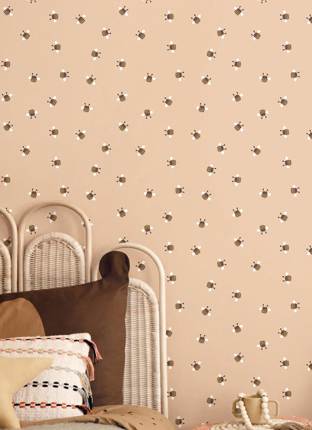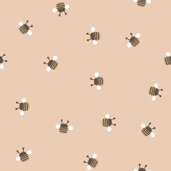 Roztomilá dětská vliesová tapeta na zeď, včelky, růžový podklad, včelky v hnědé, zlaté a bílé.
