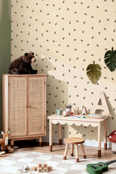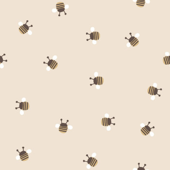 Roztomilá dětská vliesová tapeta na zeď, včelky, béžový podklad, včelky v hnědé, zlaté a bílé.