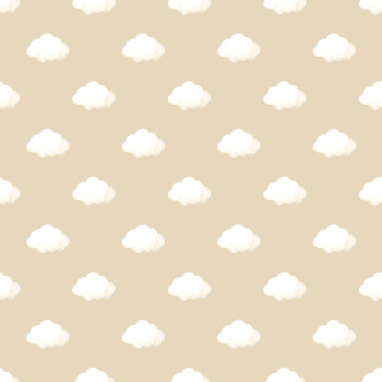 Hladká béžová vliesová tapeta na zeď, bílé mráčky na béžovém podkladu.