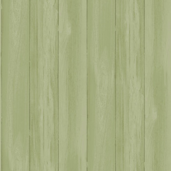 Hladká zelená vliesová tapeta na zeď, stínování tvoří efekt dřevěných palubek o šířce 8 cm.