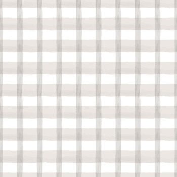 Károvaná vliesová tapeta na zeď, kombinace bílé a odstínů šedé.