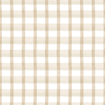 Károvaná vliesová tapeta na zeď, kombinace bílé a odstínů béžové.