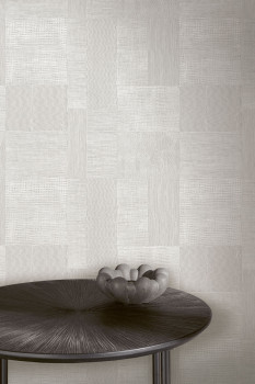 Originální vliesová tapeta na zeď, plastická textura, stříbrno bílé šrafování obrazců na šedém podkladu .