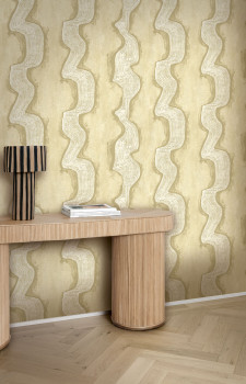 Vliesová obrazová tapeta na zeď, látková textura, béžové vlnky na zlatém podkladu .