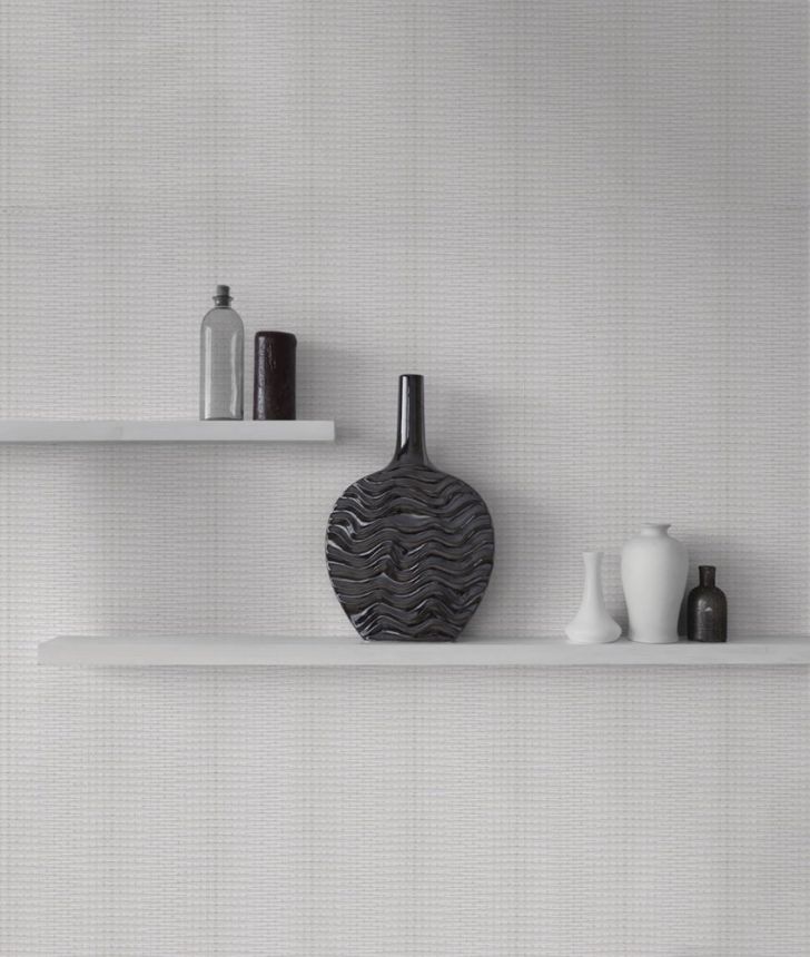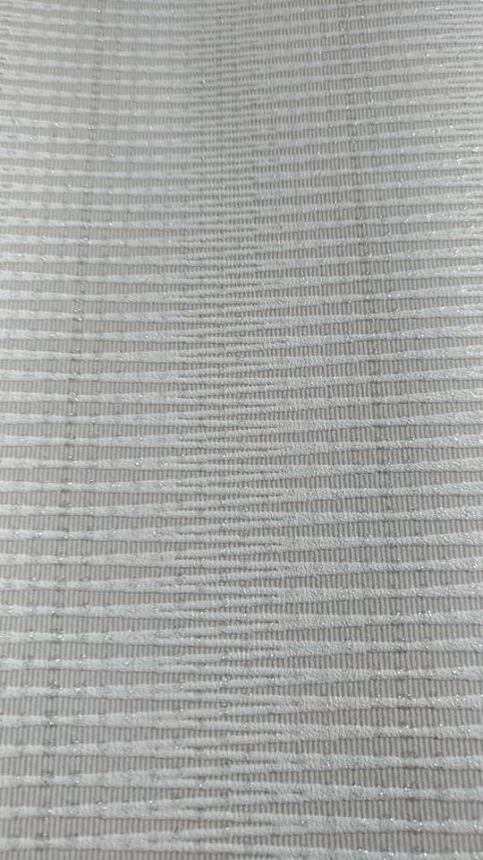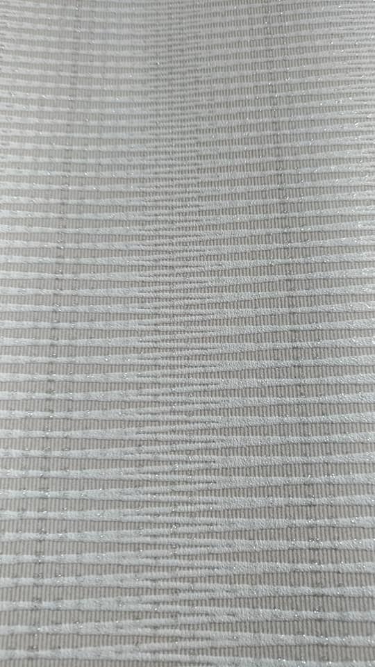 Vliesová, bílá tapeta se vzorkem ze stříbrných třpytek.