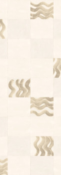 Vliesová obrazová tapeta na zeď, jemně textilní textura, šedo béžový podklad, šedo hnědé obruby čtverců a šedo hnědé vlnky.