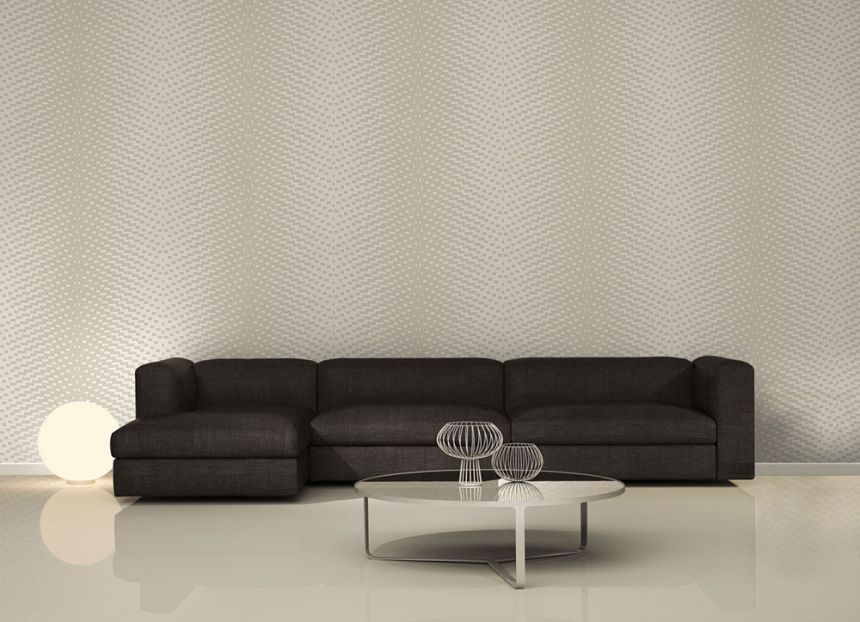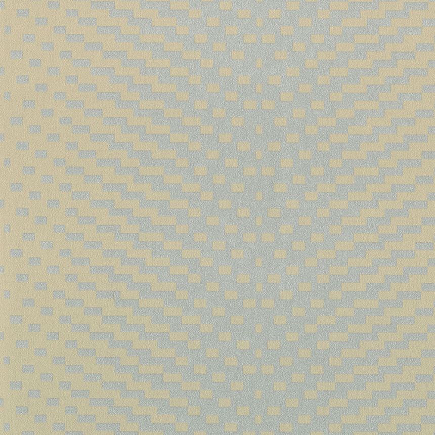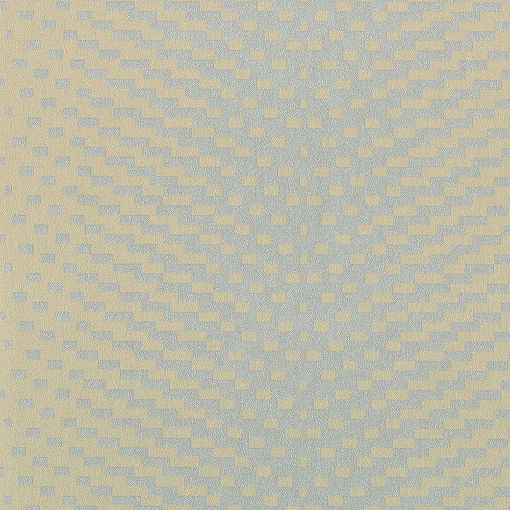 Vliesová matná béžová tapeta s šedo-modrým geometrickým vzorem s jemným pololeskem.