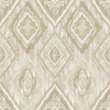 Vliesová tapeta na zeď, vzor vytváří kosočtvercové obrazce a evokuje látkovou strukturu, odstíny šedé, bílé, béžové a zlaté.