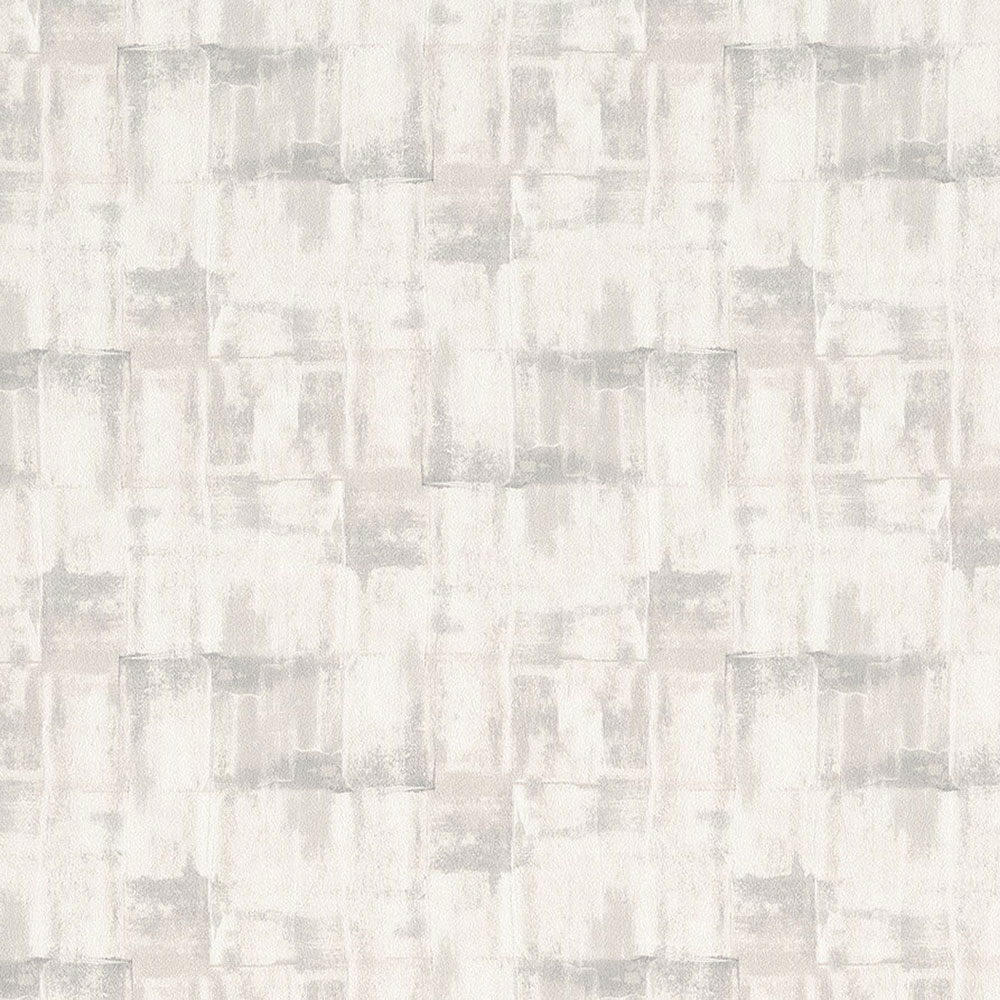 Vliesová tapeta s abstraktním geometrickým vzorem v odstnínech šedé a bílé.