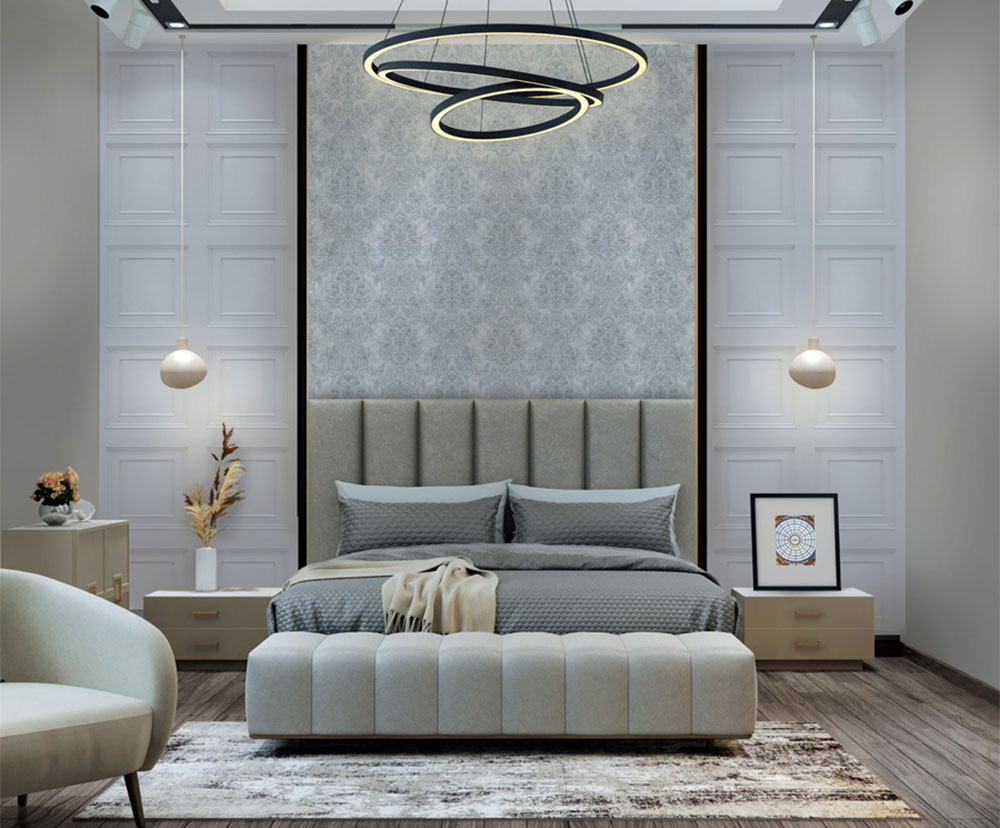 Luxusní vliesová tapeta na zeď v šedých odstínech se vzorem obkladů se 3D efektem. Luxusní 3d tapety do obýváku.