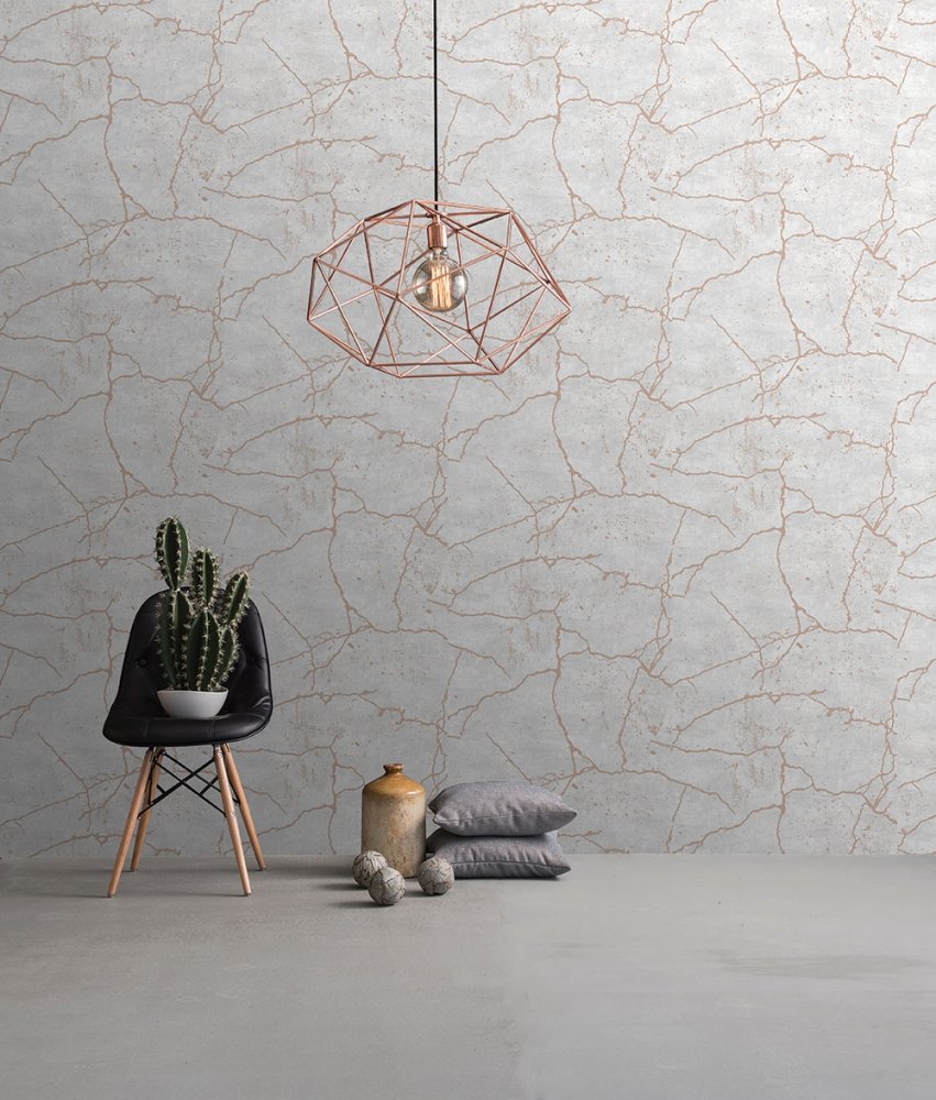 Mramor je stálicí interierového designu. Vnáší do interieru nadčasovost, kvalitu a luxus. Bronzové metalické mramorování na šedém štukovém podkladu.