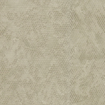 Béžová vliesová tapeta na zeď s nádechem khaki s jemným geometrickým metalickým vzorem.