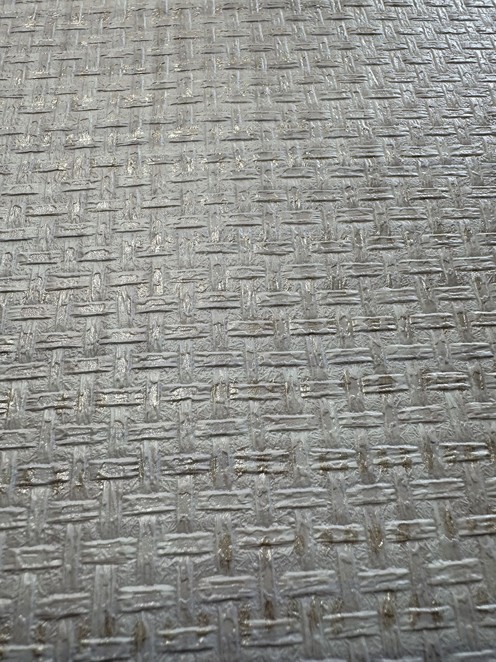 Luxusní vliesová tapeta v krémových tónech, proplétaná textura s metalickými detaily.