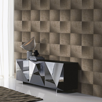 Vliesová geometrická tapeta hnědá, imitace látky.