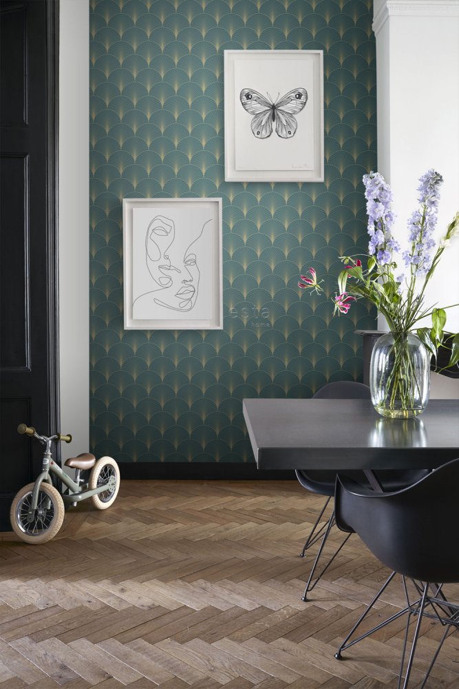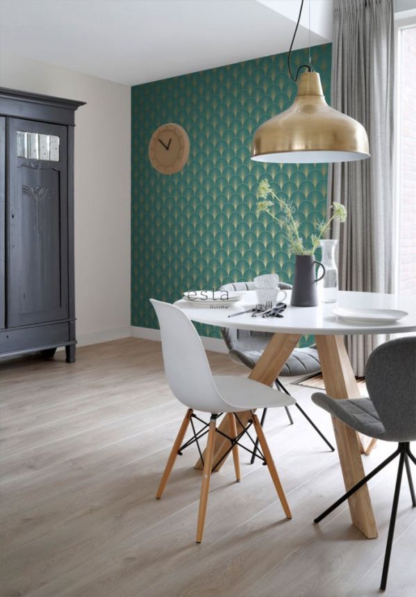 Tmavě tyrkysová geometrická vliesová tapeta 139230, Art Deco, Esta