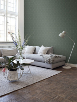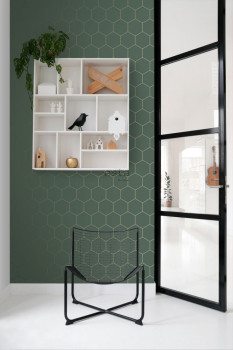 Tmavě zelená vliesová tapeta, vzor hexagony 139228, Art Deco, Esta