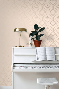 Béžová vliesová tapeta, geometrický obloukový vzor 139216, Art Deco, Esta