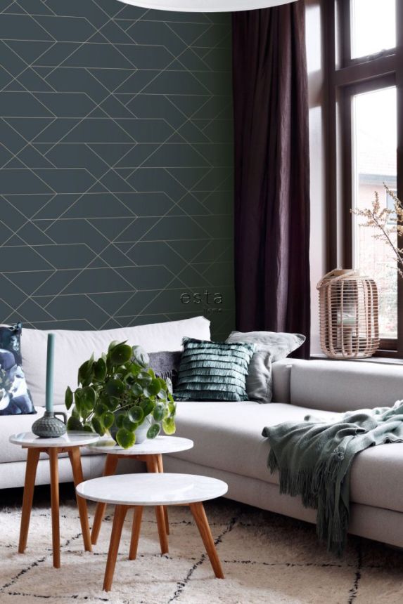 Tmavě modrá vliesová tapeta se zlatými liniemi 139213, Art Deco, Esta