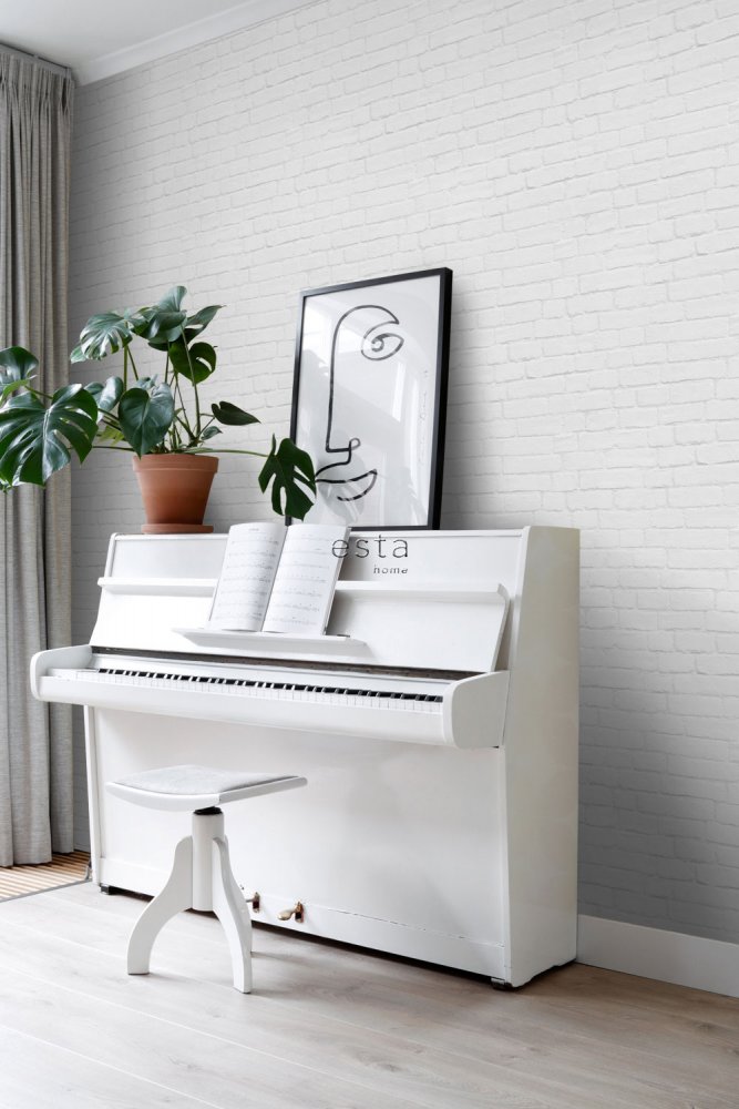 Vliesová, šedo-bílá tapeta na zeď cihly.