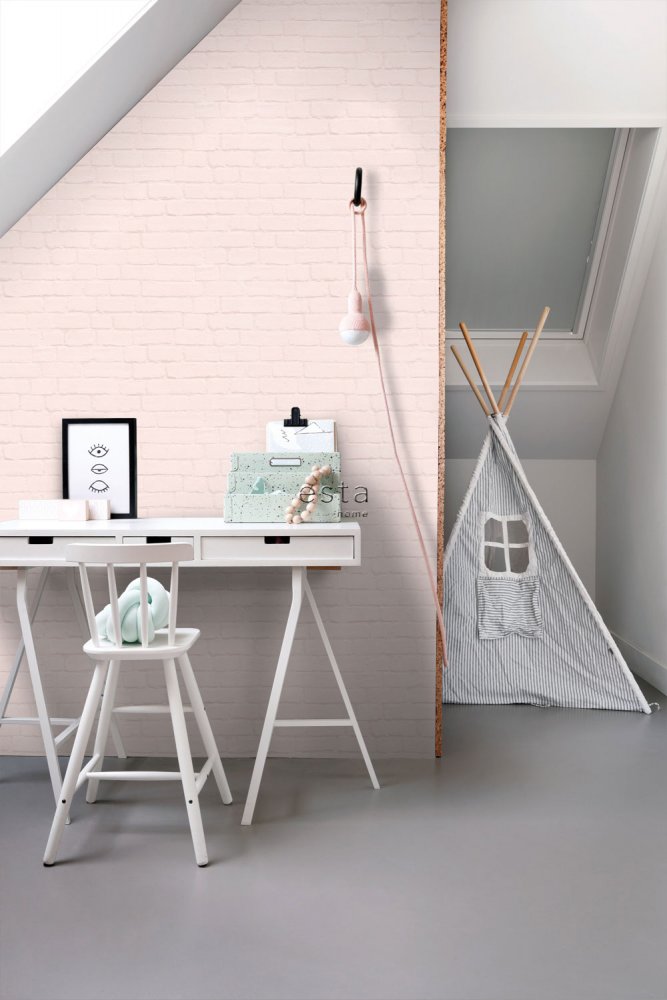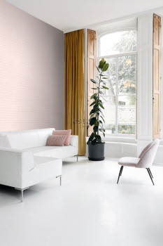 Vliesová, bledě růžová tapeta na zeď cihly.
