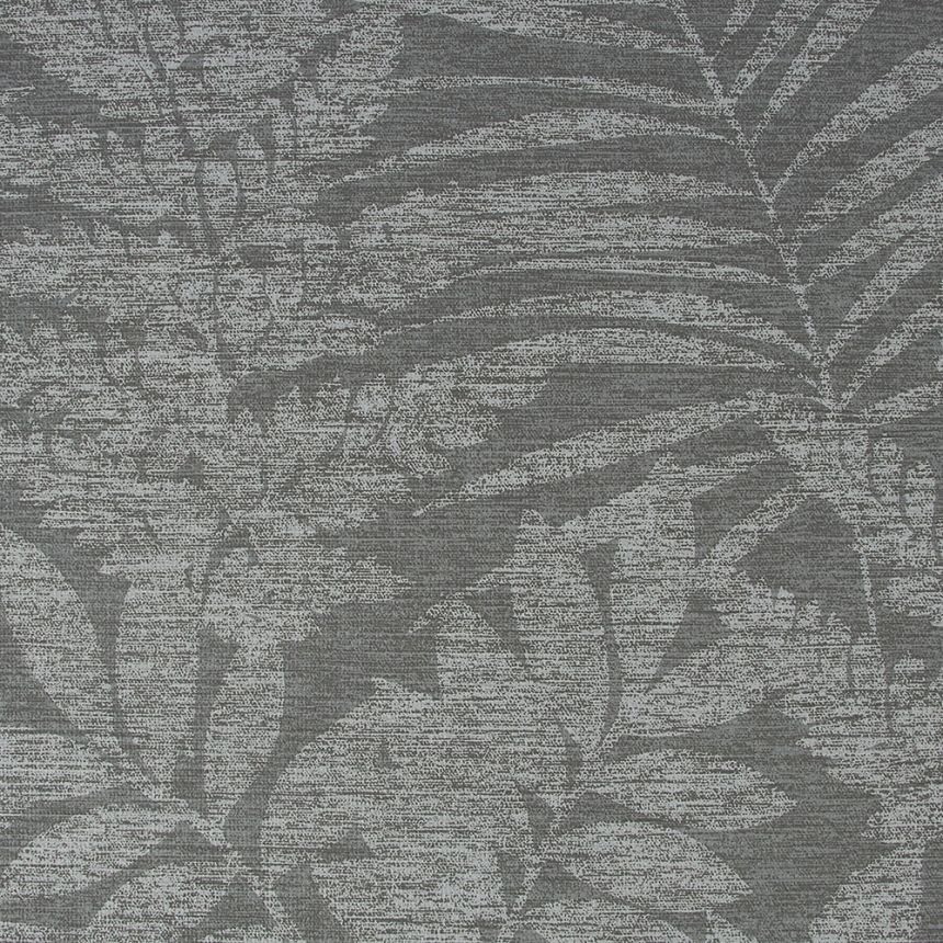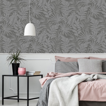 Vliesová tapeta s látkovou texturou, design listů šedo-černá melanž.