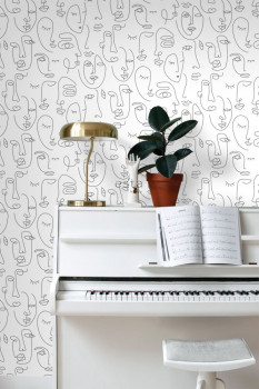 Černobílá grafická vliesová tapeta Tváře, obličeje 139145, Black & White, Esta