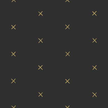 Černá vliesová tapeta se zlatými křížky 139130, Black & White, Esta