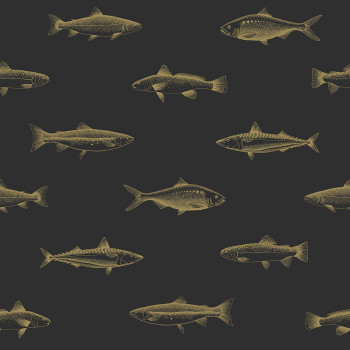Černá vliesová tapeta se zlatými rybami 139124, Black & White, Esta